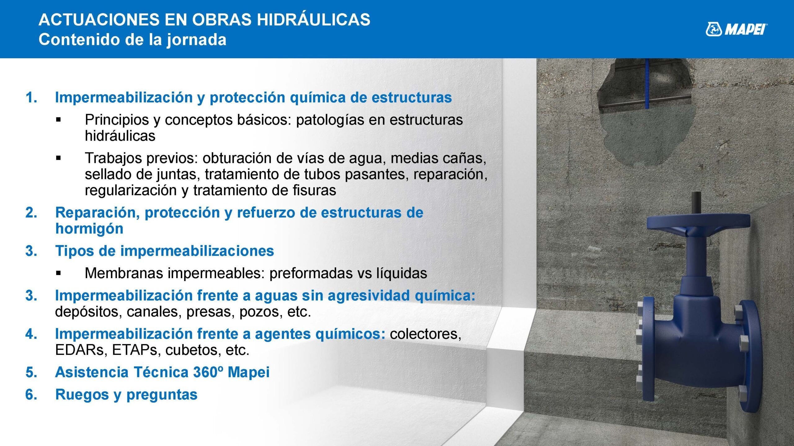 JORNADA DE FORMACION MAPEI_ACTUACIONES EN OBRAS HIDRÁULICAS