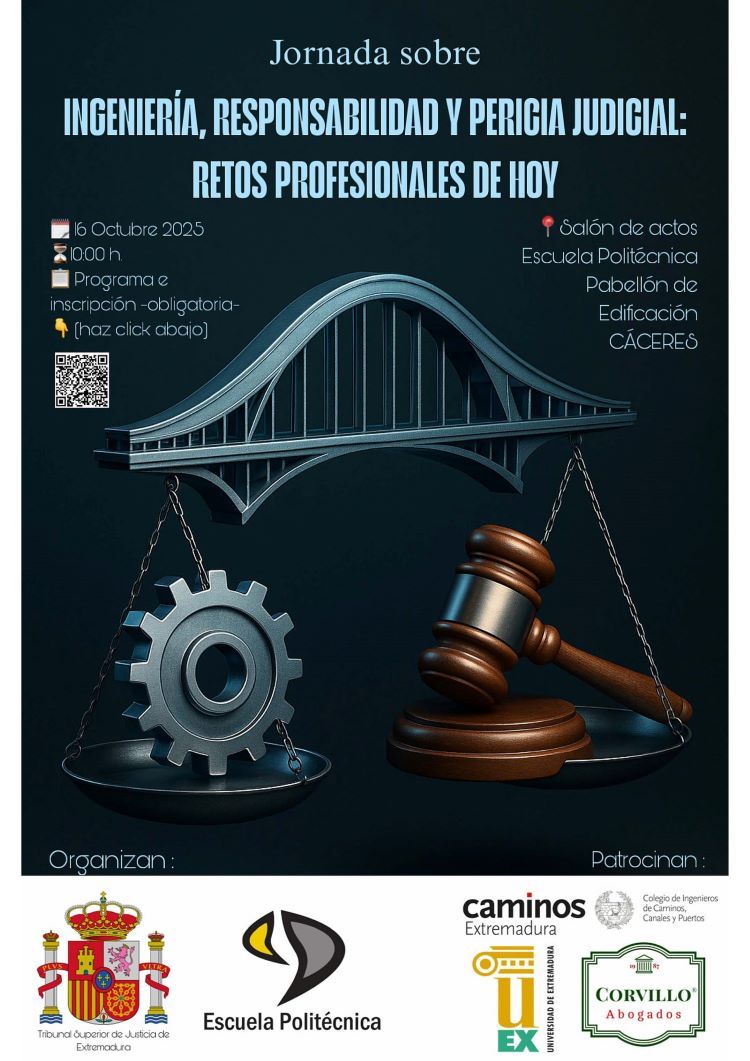 Escuela Politécnica de Cáceres Av. de la Universidad, S/N, Cáceres, Cáceres, EspañaLa Escuela Politécnica de Cáceres y el Tribunal Superior de Justicia de Extremadura organizan unas Jornadas sobre "Ingeniería, Responsabilidad y Pericia Judicial: Retos Profesionales de [...]